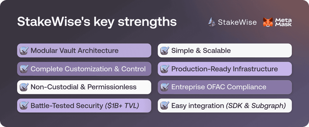 StakeWise Vaults were a perfect match for the MetaMask Pooled Staking product requirements in terms of capabilities and security.