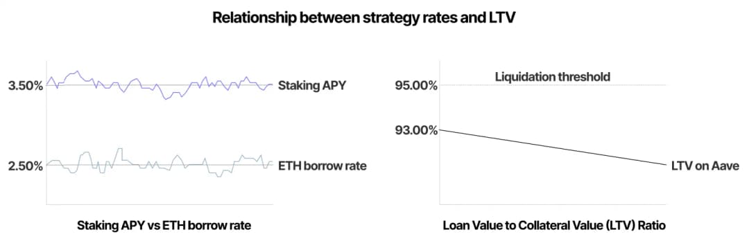 Built-In De-Risking Mechanism: When the osETH APY exceeds the average ETH borrow rate, the strategy on Aave experiences a decline in the LTV ratio, continuously de-risking its use for stakers.